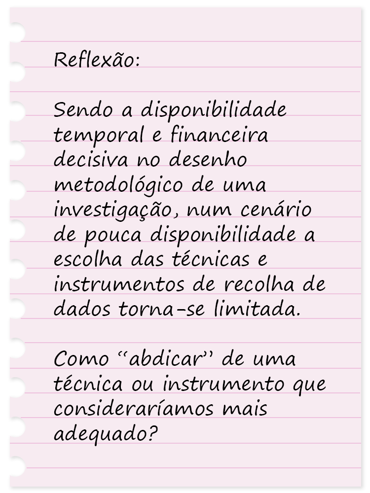 Clarificando estes conceitos, importa referir que “nenhum método é melhor ou pior que outro”, devendo a escolha ser feita “em função dos objetivos da investigação, do modelo de análise e das características do campo de análise” (Costa, F. A.) e que as técnicas e os instrumentos de recolha de dados devem ser coerentes com o método (quantitativo, qualitativo ou misto).