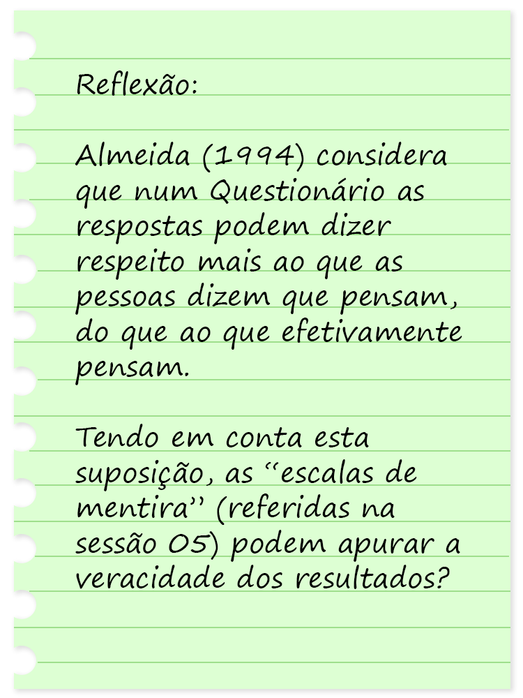 De natureza predominantemente quantitativa ou mista, um Questionário “consiste em colocar a um conjunto de inquiridos, geralmente representante de uma população, uma série de perguntas (…)” (Quivy & Campenhoudt, 2005).