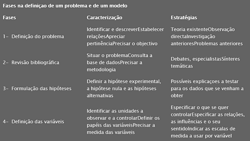 definições de conceitos acerca de paradigmas, problemas, hipóteses e metodologias de investigação.