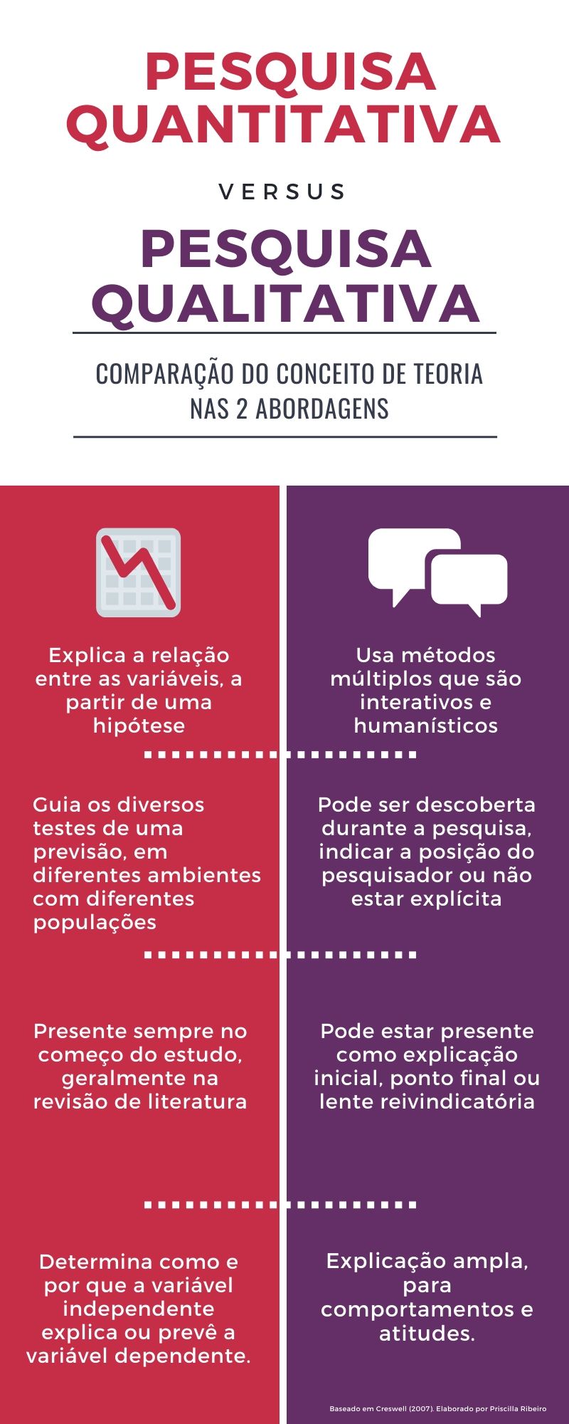 Dependendo da abordagem escolhida para a investigação, as teorias podem estar presentes em diferentes momentos e servir a diferentes propósitos. Veremos a seguir as principais diferenças entre a teoria na pesquisa quantitativa e na qualitativa: