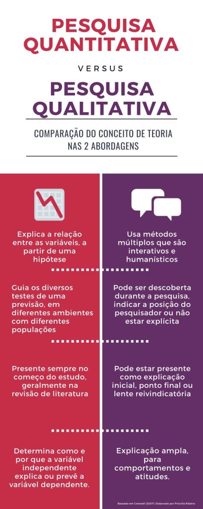 Quadro 1. Teoria nas abordagens quantitativa e qualitativa. Elaborado pela autora com base no artigo de Creswell (2007).