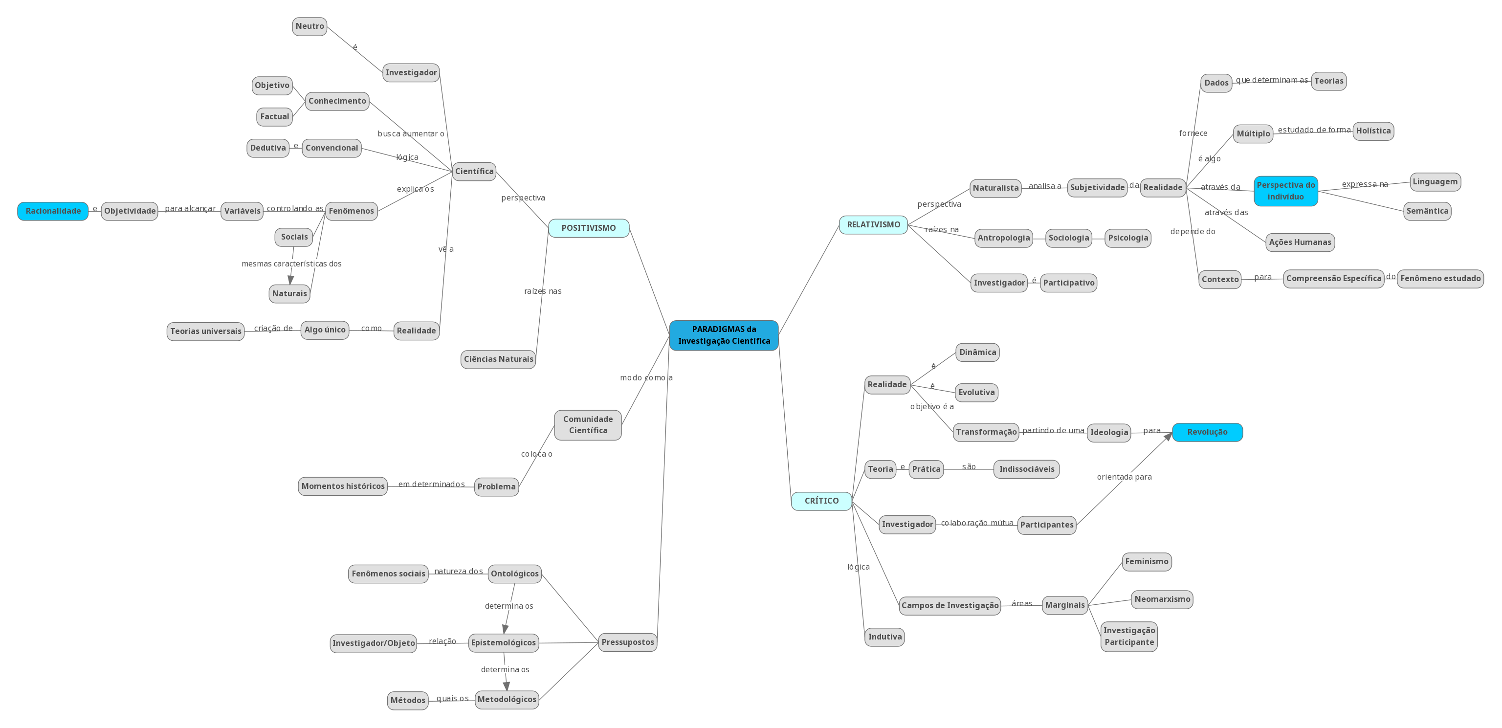 Mapa Conceitual “Paradigmas da Investigação Científica”.